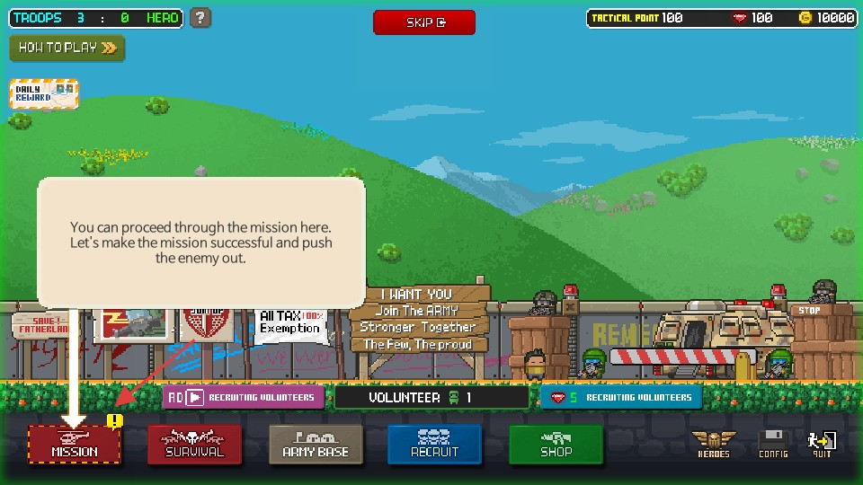 在游戲操作界面,點擊【MISSION】按鈕,即可進入任務選擇界面。