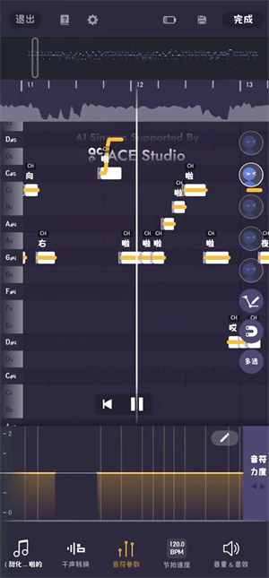 7、如果想要切換歌姬,點擊上方的音軌,然后選擇左側的頭像,選擇想要切換的虛擬歌姬角色,選好后點擊播放就可以了,聽完覺得不錯之后就可以保存,或者點擊下一步準備發布作品了就可以了。