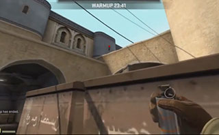 當T進攻B點斷后時,站在這里比貼墻更好,因為地圖的改動使得香蕉道門口兩邊都可以站人。此時,如果對手稍有頭腦,會先看右邊(圖中準星瞄準的地方),然后再檢查左邊。這樣,你完全可以提前半個身位知道他的動向。