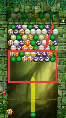 2、通過滑動屏幕來控制發(fā)射方向,瞄準上方相同顏色的雞蛋,點擊屏幕發(fā)射雞蛋,讓發(fā)射的雞蛋與上方相同顏色的雞蛋相碰,完成消除操作。
