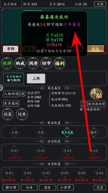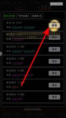 3、通關后進入獎勵界面,點擊領取青光寶戒、青光寶鞋等裝備或道具,這些獎勵可以增強角色的戰斗力,為你的修真之旅提供幫助。