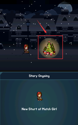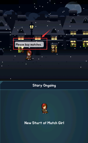 2、點擊紅色框選中的對話框,觸發小女孩請求購買火柴的劇情。