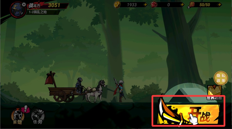 2、打完第一波敵人后記得點升級,可以加攻擊力或者血量,建議先堆攻擊,這樣后面打怪能更快解決戰斗節省時間。