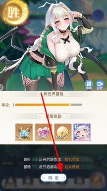 2、戰(zhàn)斗勝利后,會出現(xiàn)勝利結算界面,這時點擊確定,領取冒險獎勵。這些獎勵包括經(jīng)驗、道具等,能夠幫助你更快地成長。