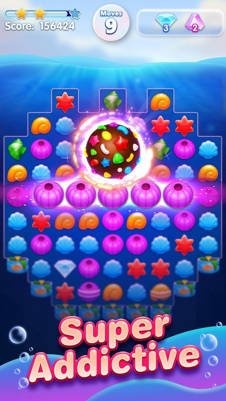 1、滑動(dòng)屏幕來匹配3條或更多的魚;