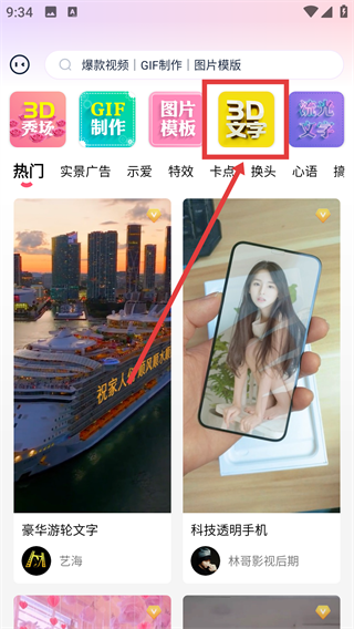 在軟件首頁找到并點擊【3D文字】功能按鈕,即可進入3D文字素材的制作頁面。