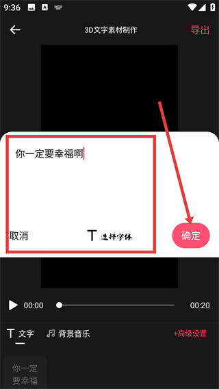 在文字編輯框里輸入你想制作的文字,比如【你一定要幸福啊】,還能挑選字體,接著點擊【確定】按鈕。