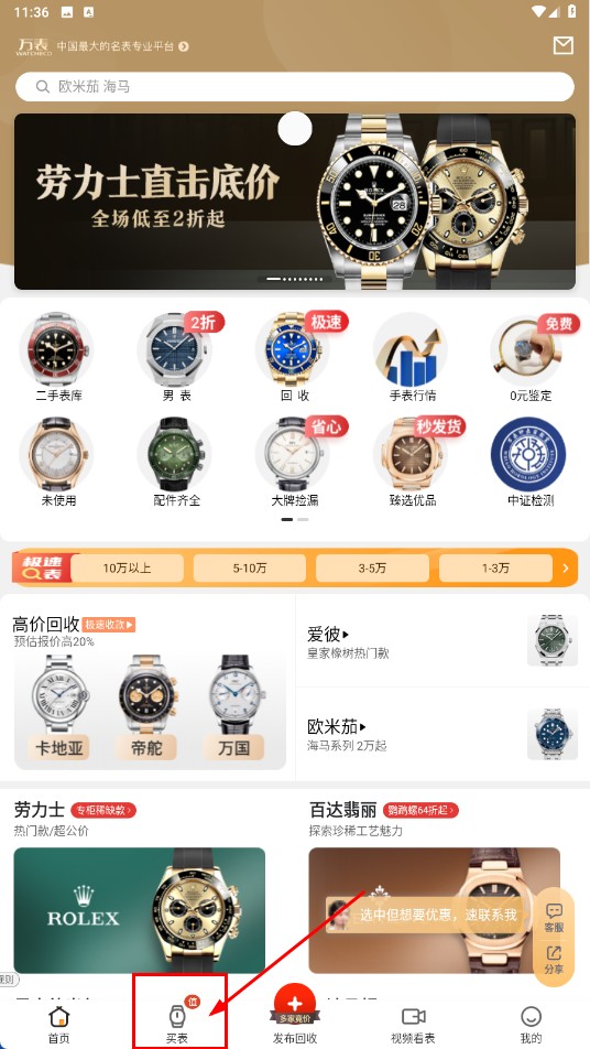 點擊【進入萬表二手表平臺-功能按鈕】,即可進入平臺首頁。