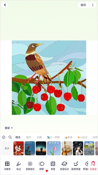 下面的工具往左滑找到摳圖,點(diǎn)擊進(jìn)入