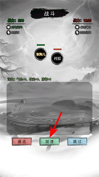 進入戰斗界面后,點擊紅色箭頭所指的加速按鈕,即可加快戰斗節奏,提高戰斗效率,從而快速完成戰斗挑戰。