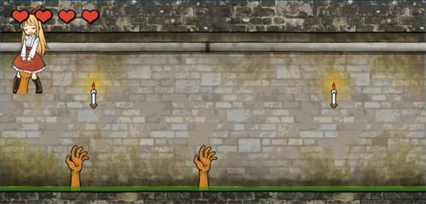 這一關(guān)中,地面下布滿了手,玩家得讓這些地下的手把自己的血量打空,這樣才能觸發(fā)通關(guān)條件。