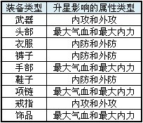 裝備升星屬性影響表