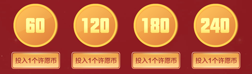 每付費購買獲得1個鑰匙自動獲得1個許愿幣。共有4個許愿池,分別對應不同的愿望道具,選擇愿望道具后,可以將許愿幣投入任一許愿池中積累許愿值,許愿值達到固定值后可領取愿望道具,若期間更換愿望道具或領取愿望道具,則許愿值清零。許愿獲得道具不進暫存箱直接發往游戲內