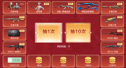 可以使用鑰匙進行抽獎,抽獎獲得的可分解道具存放在【暫存箱】中,可選擇重新分解成鑰匙或發往游戲倉庫;不可分解道具直接發往游戲內,已經領取到倉庫的道具無法退換,請慎重(在參與活動期間請確認好綁定的大區)。(王者玲瓏(永久)、迷迭香(永久)、透明頭盔(永久)為唯一性道具,可重復抽到,但在游戲倉庫無法重復獲得)