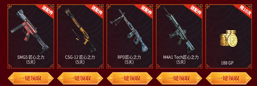 SMG5匠心之力(5天)、RPD匠心之力(5天)、GSG-12匠心之力(5天)等