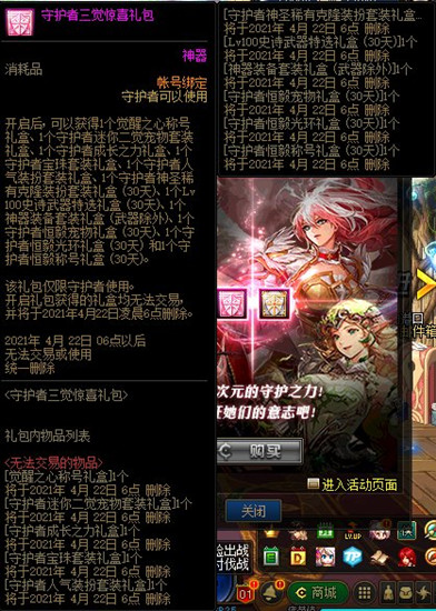 守護者三覺堅韌禮包666點券;守護者三覺驚喜禮包3666點券