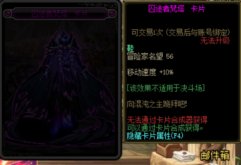 《DNF》囚徒者梵塔 卡片是黑鴉之境副本產出的附魔卡片之一。這張附魔卡片可以附魔在鞋子裝備上,為角色提供移動速度加成。下面小編就為大家帶來《DNF》囚徒者梵塔 卡片屬性的詳細介紹,一起來了解下吧。